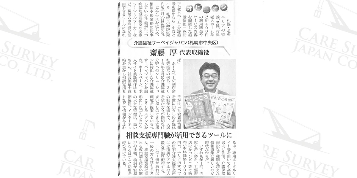 冊子すむところが2018/11の介護新聞に掲載されました